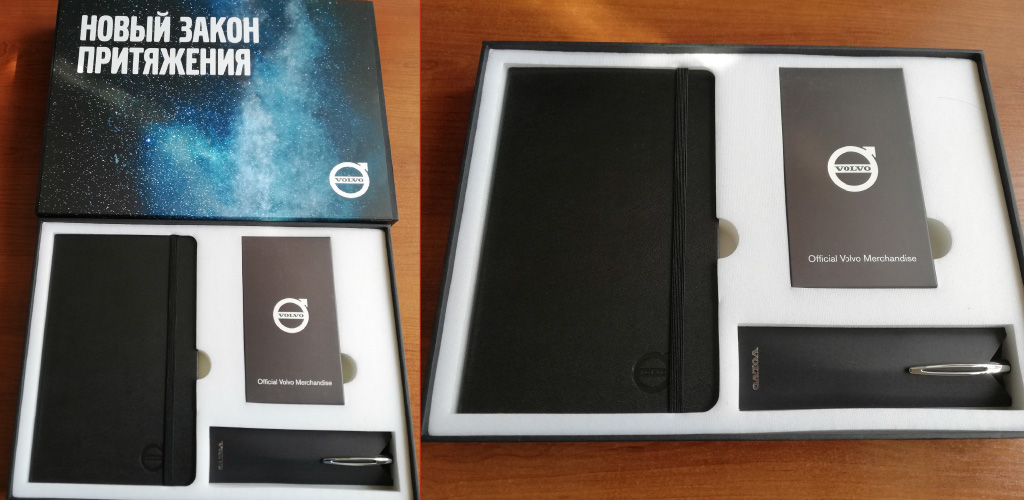 Специально для выставки Comtrans 2019 изготовили подарочные наборы для клиентов и друзей компании Volvo Trucks Россия. Славный молескин и мощный power bank в подарок. Жесткая подарочная коробка с ложементом для вложений, шубер, все выполнено в стилистике мероприятия.